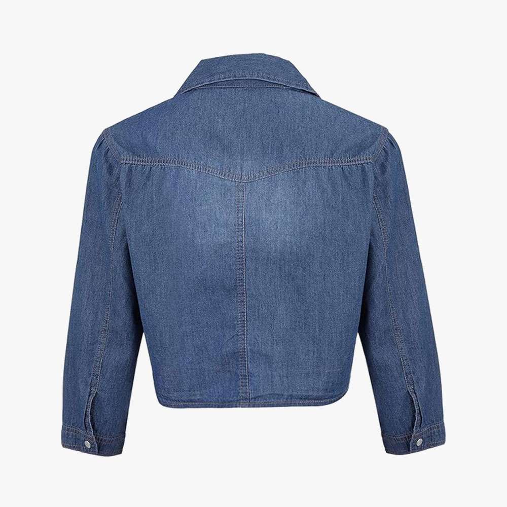 Denim Jean Top Jacket Sleeve Crop Women